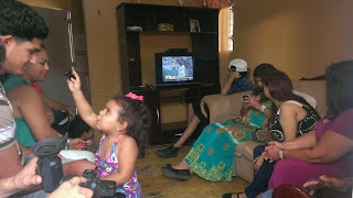 dando cobertura al acontecimiento en compañía de la familia de beisbolista
